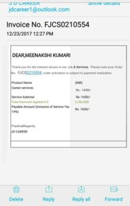 On 24 Dec a female call me from jd career and told me that I have shortlisted for an icici bank job ND for that I have to complete some procedure. Then she made registration of rs1650 ND told me to send my documents I. E. 1 photo ID proof 1 photo 1 highest qualification marksheet On Id [email protected] . I provided the same.after that they demanded for rs 8000 for document verification. I felt suspicious and refused to pay . sr plzz help me to recover my money.